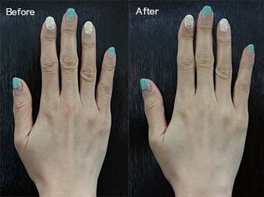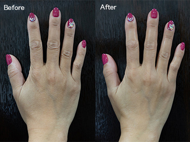 肌全体のトーンが明るくなるのはもちろん、手の甲のシワが目立たなくなり、関節のシワも浅くなっています♡