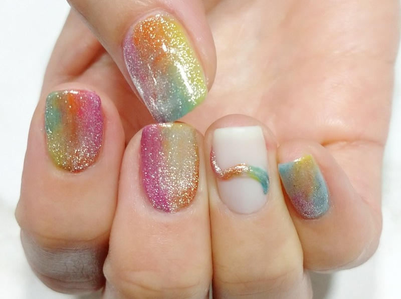 夏らしいタイダイ柄とマグネットを合わせた、カラフルネイルです。