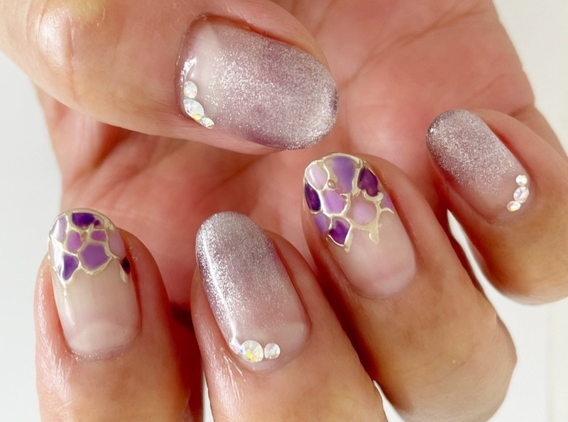 紫陽花色のステンドグラス風ネイル